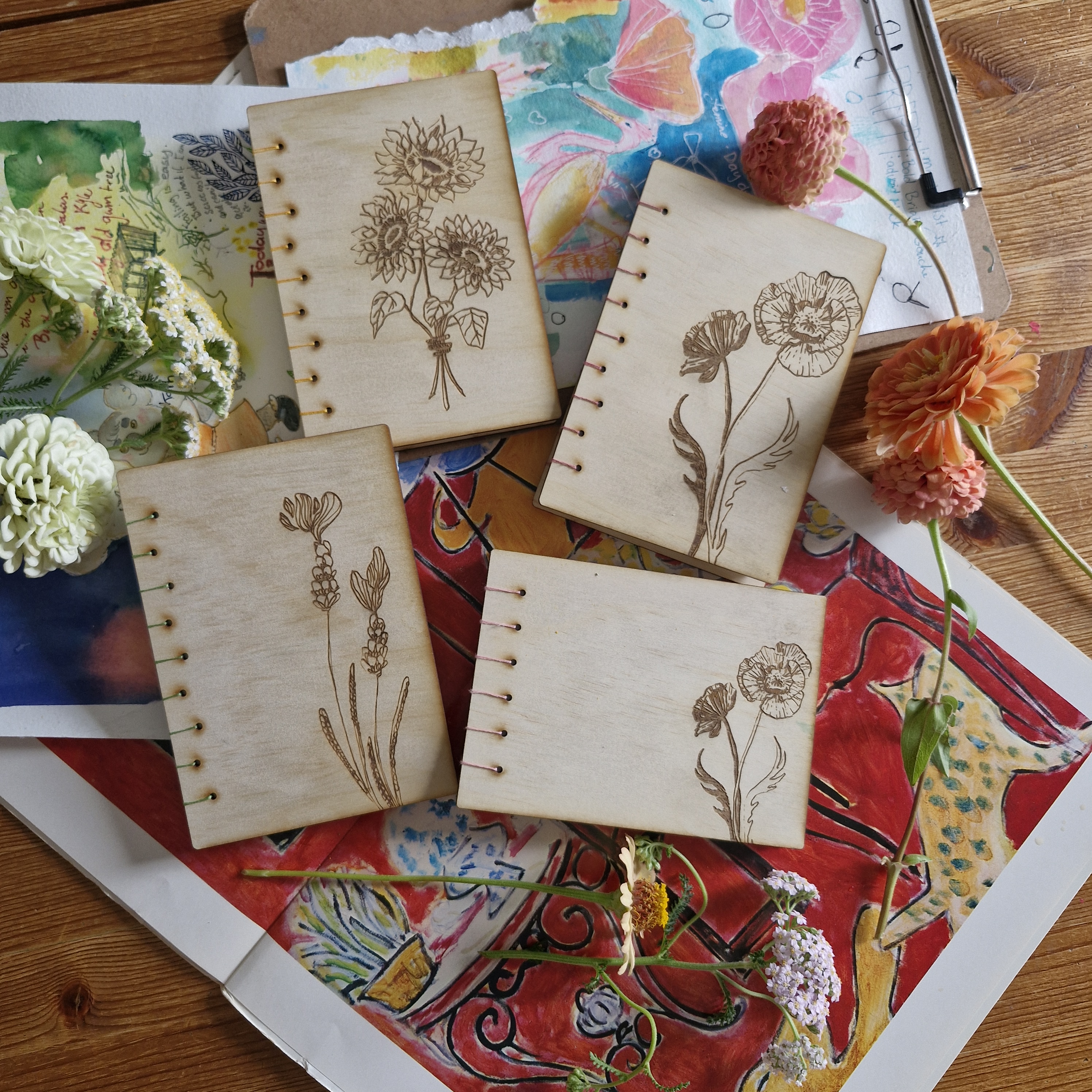 Last year I joined a makerspace and had an epiphany. For years I had been making little art journals for myself, but by making wooden covers I could take them to the next level. Now better than ever, you can have one too. They are hardy and made with quality papers (300gsm watercolor or 100gsm sketch)